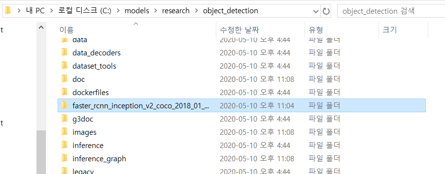 - 'faster_rcnn_inception_v2_coco' 를 다운로드 받은 기준으로 설명하겠습니다.