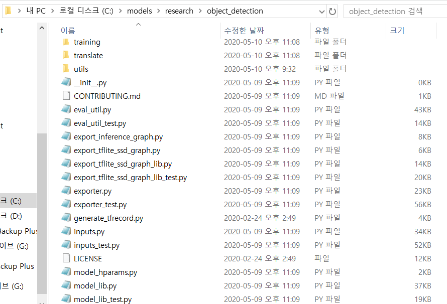 - C:\models\research\object_detection 아래에 저장한 기준으로 설명하겠습니다.