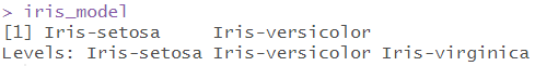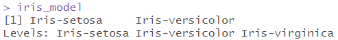 # 모델에 새로운 데이터 넣어보기 iris_test <- data.frame(SepalLength=c(2.0,6.7), SepalWidth=c(7.0,3.1), PetalLength=c(1.0,4.4), PetalWidth=c(0.1,1.4)) iris_model <- knn(iris_training,iris_test,iris_training_label,k=3) iris_model |