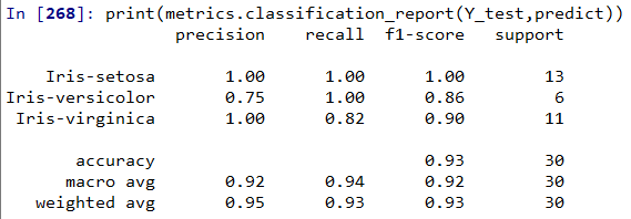 # 혼동행렬 만들기 from sklearn import metrics print(metrics.classification_report(Y_test,predict)) |