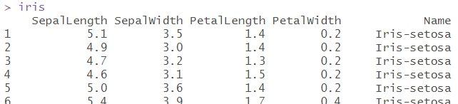 # 데이터 불러오기 iris <- read.csv("C:/data/iris.csv", header=T, stringsAsFactors=F) |