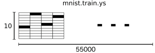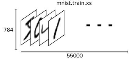 - mnist.train.image : 텐서플로우의 행렬을 나타내는 shape의 형태로는 shape=[55000,784] 이 된다.