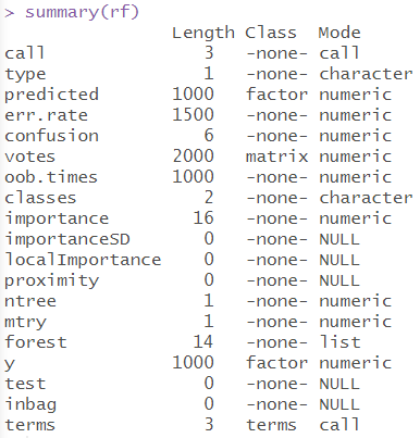 # 맥시멈정보 확인 summary(rf) |