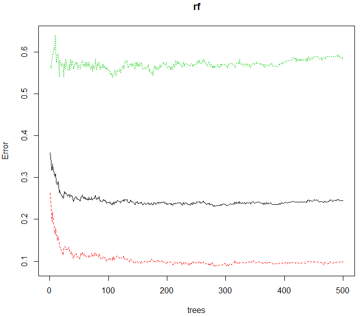 # 그래프 그리기 plot(rf) |