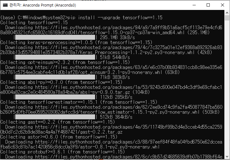 2) 텐서플로 1.15버전으로 설치