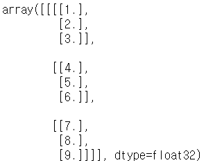 - image : 1,3,3,1 (이미지갯수, 높이, 너비, 색수)