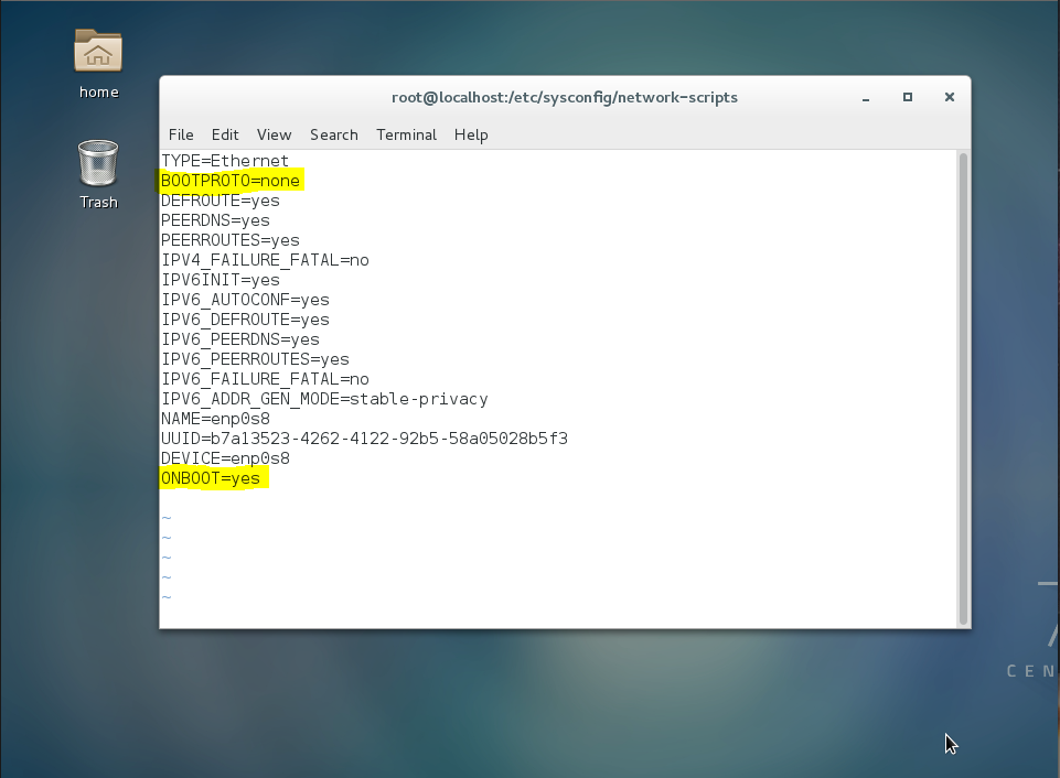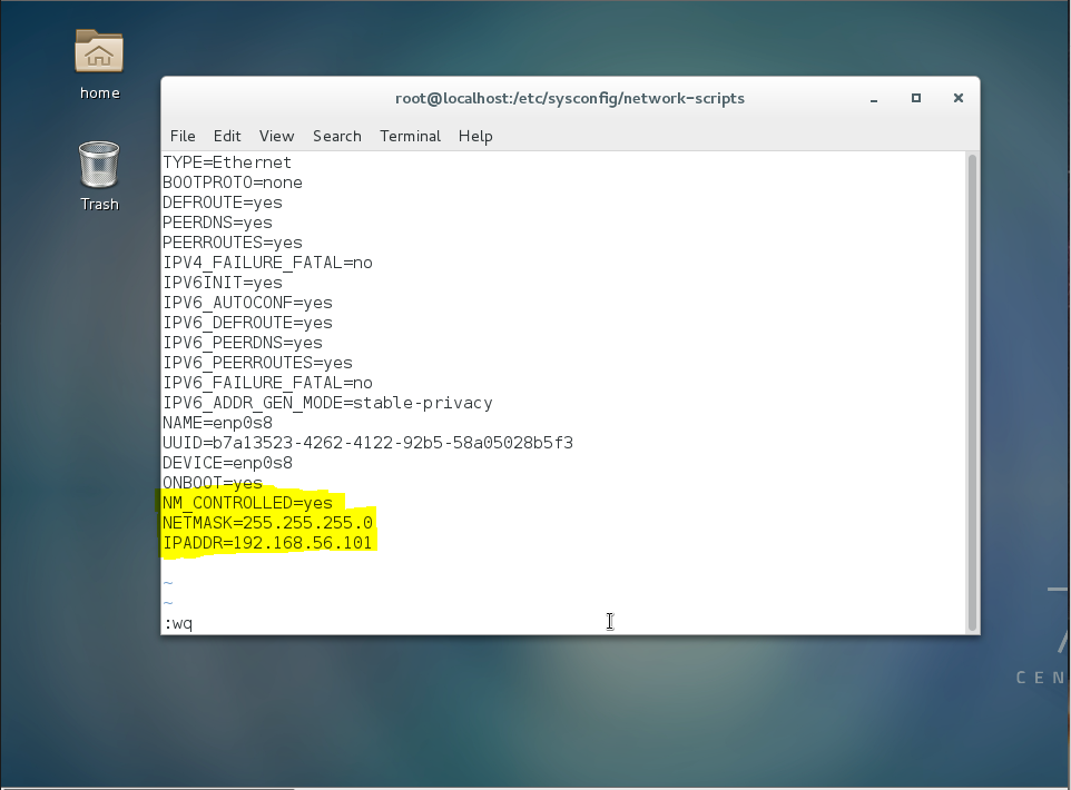 | BOOTPROTO=none ONBOOT=yes NM_CONTROLLED=yes NETMASK=255.255.255.0 IPADDR=192.168.56.101 |
