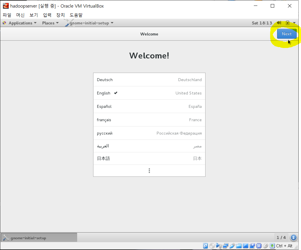 6. 언어를 선택하고 'Next' 버튼을 누른다.