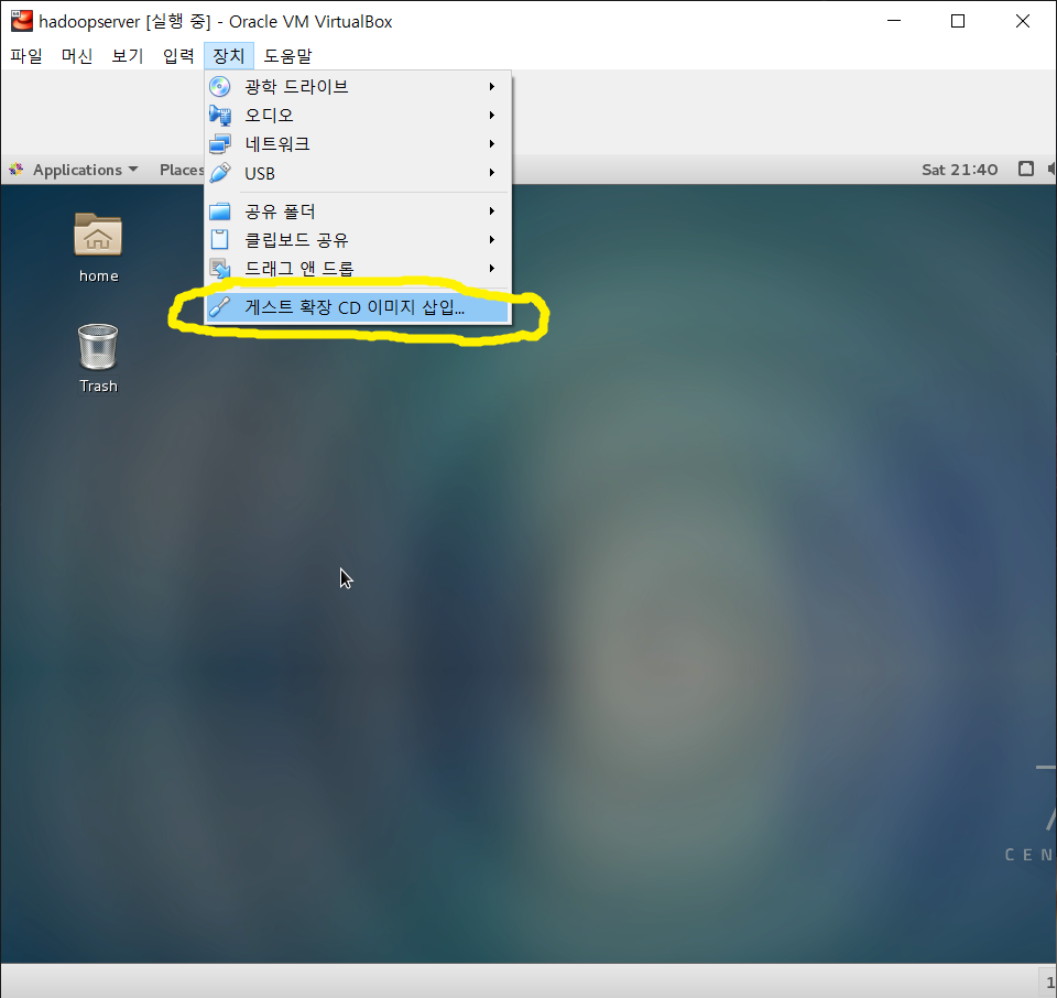 2. [장치] - [게스트 확장 CD 이미지 삽입...] 클릭