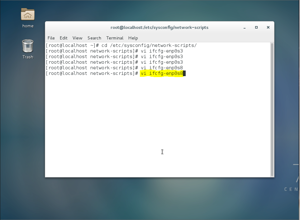 4. vi 편집기로 ifcfg-enp0s8 수정 (어댑터 2)