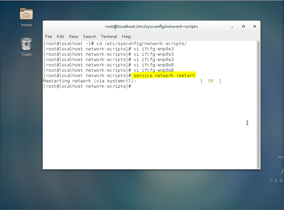 3. vi 편집기로 ifcfg-enp0s3 수정 (어댑터 1)