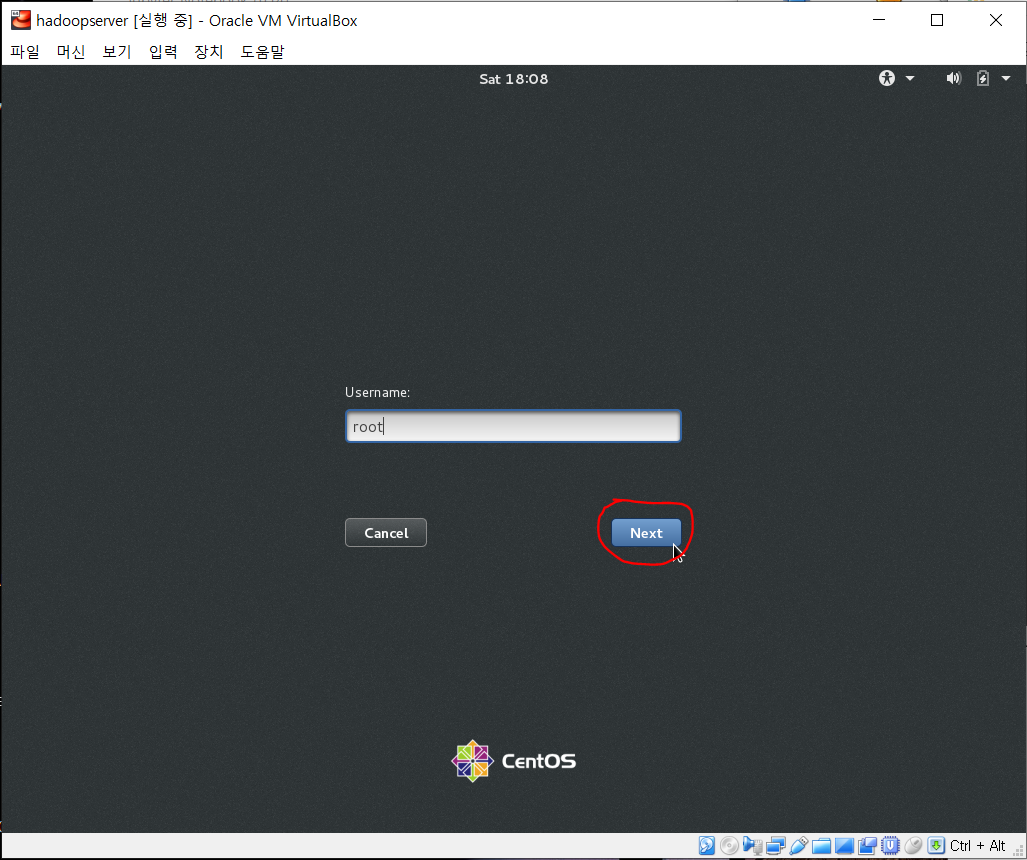 4. 접속할 계정 이름(root)를 입력하고 'Next' 버튼을 누른다.