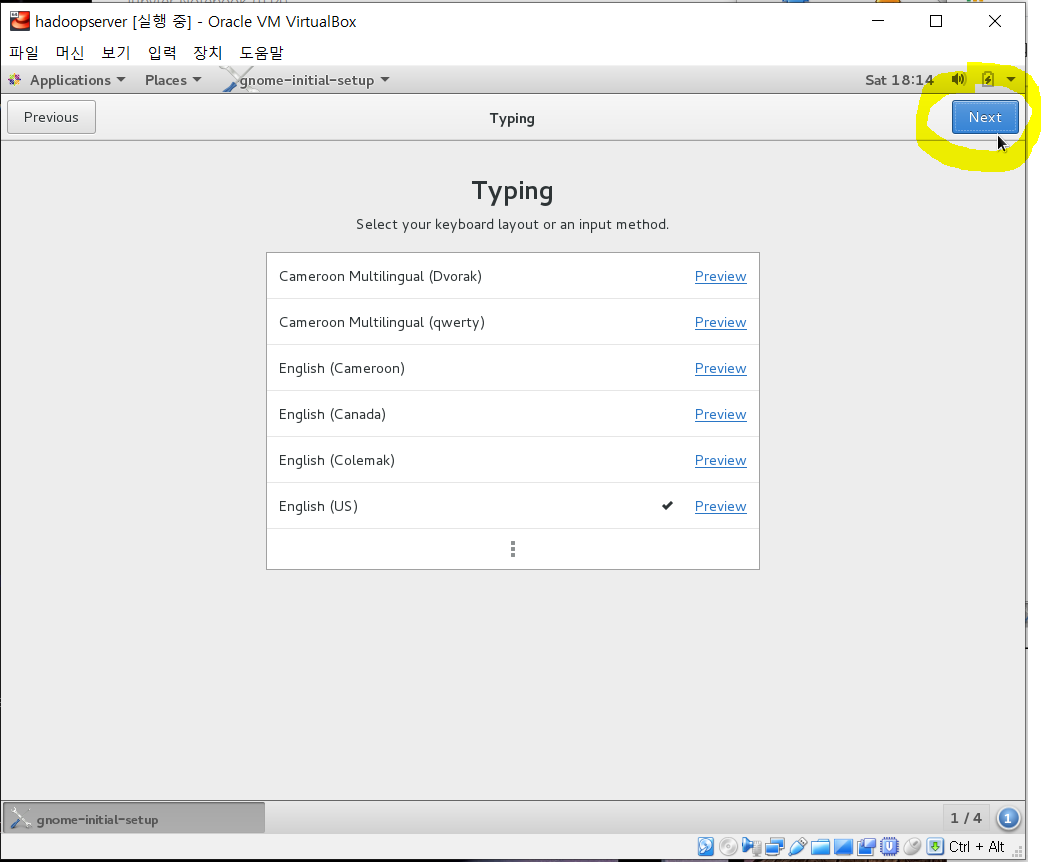 7. 타이핑 언어를 선택하고 'Next' 버튼을 누른다.