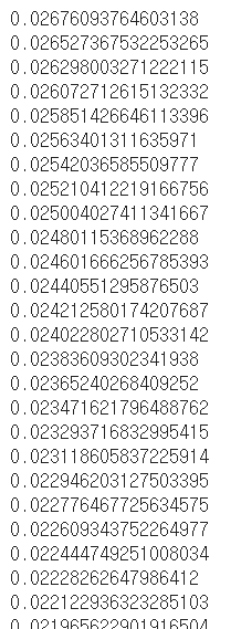 # 수렴 확인을 위한 loss를 기록해 둔다 losses.append(loss.item()) print(loss.item()) |