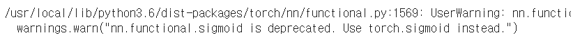 # 시그모이드 함수를 적용한 결과는 y=1의 확률을 보여 준다. prob = nn.functional.sigmoid(h) |