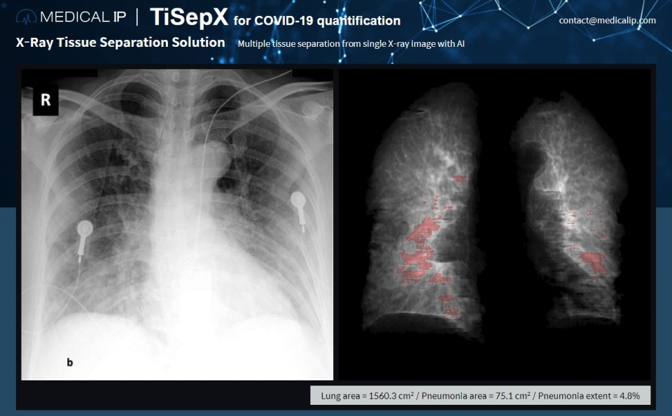- 코로나19 환자의 X-ray 영상에서 폐렴 병변의 면적과 비율 등 수치 정보를 얻게 돼, 신속하고 정확하게 중증도를 판별