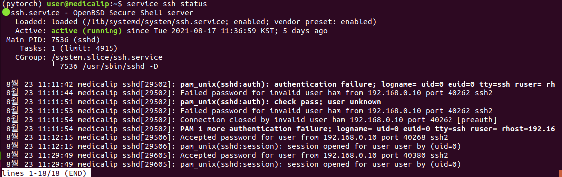 # ssh (유저명)@(내부 아이피) -p (포트번호)