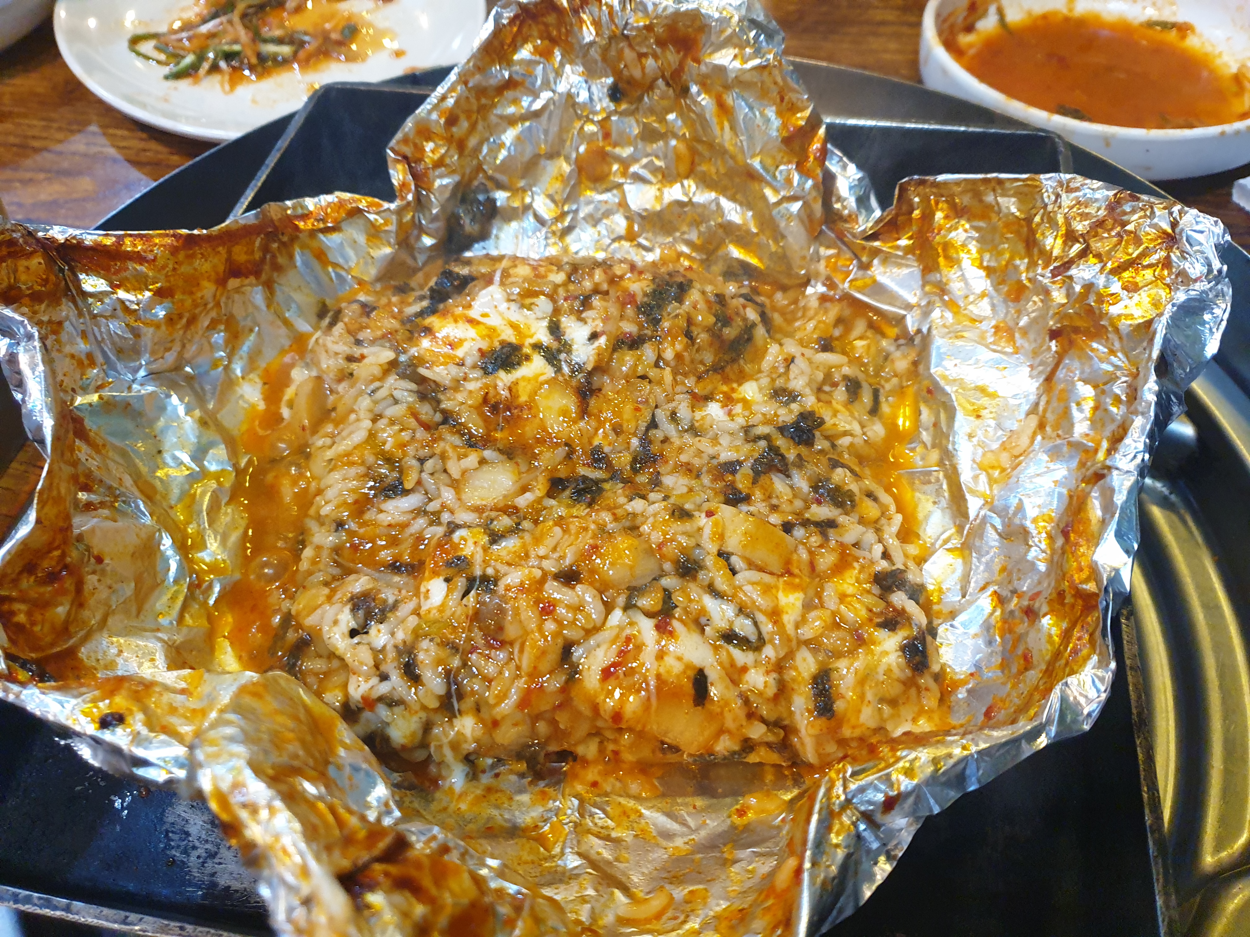마지막 볶음밥에 들어간 김치가 좀 셨는데 먹다보니 맛있었습니다. 치즈도 들어가서 리조또처럼 먹었습니다.