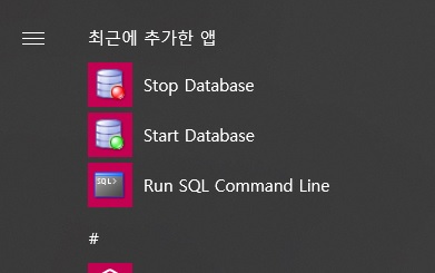 Stop Database / Start Database / Run SQL Command Line 이