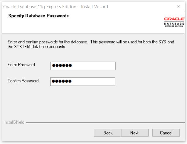 매우매우매우 중요한 오라클 sys와 system의 패스워드를 지정하는 단계입니다.