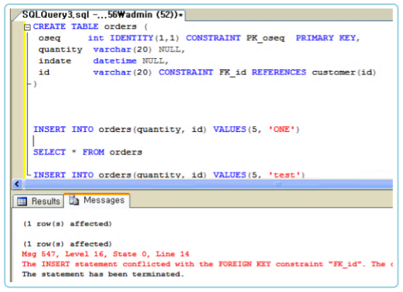 5) 참조 무결성 설정 및 삽입 오류의 예