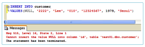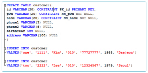 - 도메인 무결성 제약조건 : 입력 값의 제한