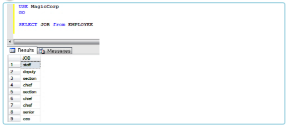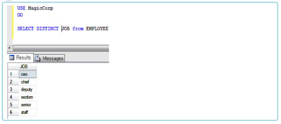 예) 사원 테이블에서 모든 직급(JOB) 검색