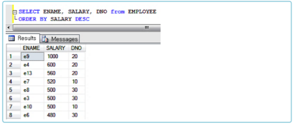 예) 봉급(Salary) 기준 내림차순으로 사원들의 이름, 봉급, 부서 번호 출력