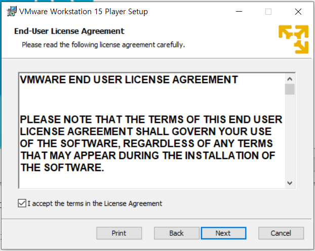 컴퓨터를 재시작하고 다시 VMware 설치 파일을 실행시키면