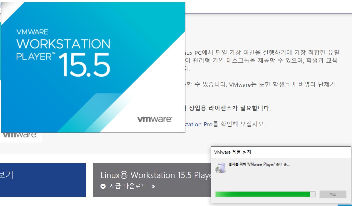 아래의 Windows용 Workstarion 15.5 Player 사용해 보기의 지금 다운로드를 클릭합니다.