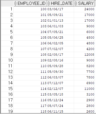 select employee_id, hire_date, salary