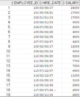 where hire_date < to_date('2005-01-01','yyyy-mm-dd');