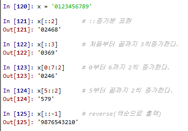 x[::-1] # reverse(역순으로 출력)