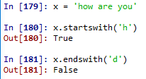 endswith( ) : 원본 문자열이 매개변수로 입력한 문자로 끝나는지 판단하는 함수(대소문자 구분함)