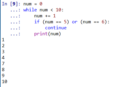 : continue를 만나면 밑에 문장을 수행하지 않고 다시 while문으로 돌아간다.