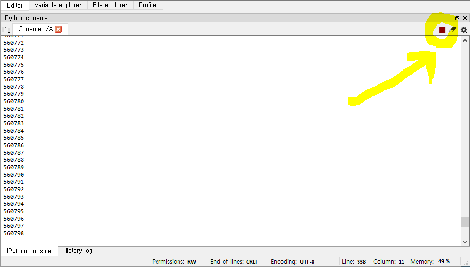 이때 멈추려면 위 사진에 표시한 빨간 네모 버튼을 눌러주면 됩니다.