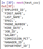next(test_csv) # 첫번째 행을 출력하고 없어짐 / 여기선 컬럼이 사라진다.