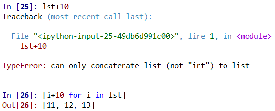 [i+10 for i in lst] # 리스트 값을 계산하려면 for문 사용