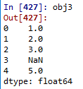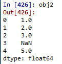 | obj2 = Series([1,2,3,np.nan,5]) |