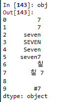 obj = Series([7,'7','seven','SEVEN','Seven','seven7','칠','칠 7',' ','#7']) ![]() |