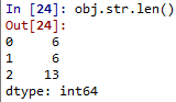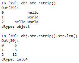 # 오른쪽 공백 제거 # 오른쪽 공백 제거 한뒤 문자 길이 obj.str.rstrip().str.len() |