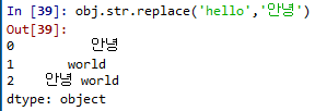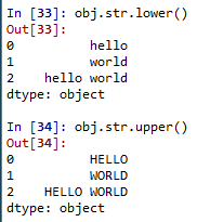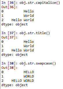 # 소문자 <-> 대문자 로 변경 obj.str.swapcase() |