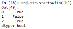 # regex:정규식 표현을 이용해서 찾겠다. obj.str.contains('h|w', regex = True) |