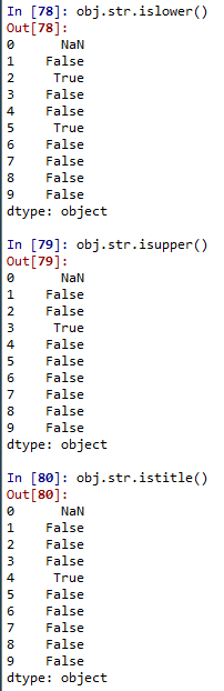 # 첫글자 대문자 /나머지 소문자 구성 여부 obj.str.istitle() |