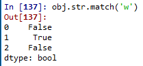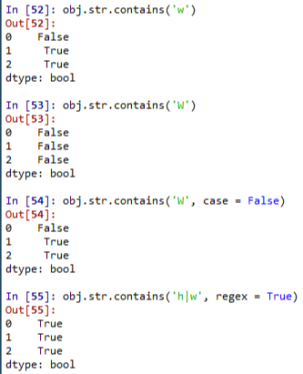 # 대소문자를 구분하지 않고 찾겠다.(기본값은 소문자) obj.str.contains('W', case = False)