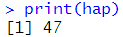 # next : 반복문 계속 수행 hap <- 0 for(i in 1:10){ if(i==3 | i==5){ next } hap <- hap+i } print(hap) |
